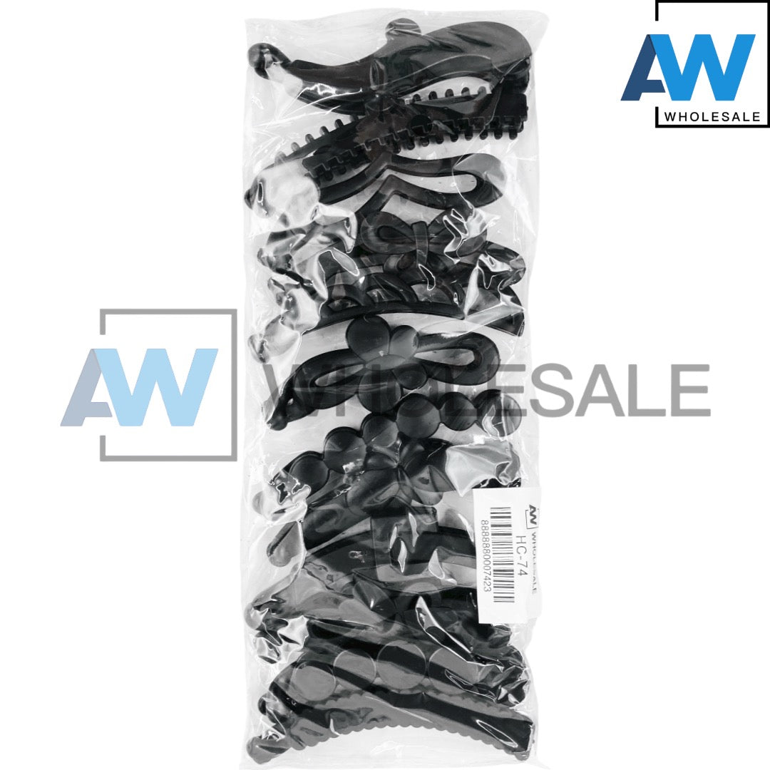 HC-74 (12 pcs) Matte Assorted Black Banana Hair Clip