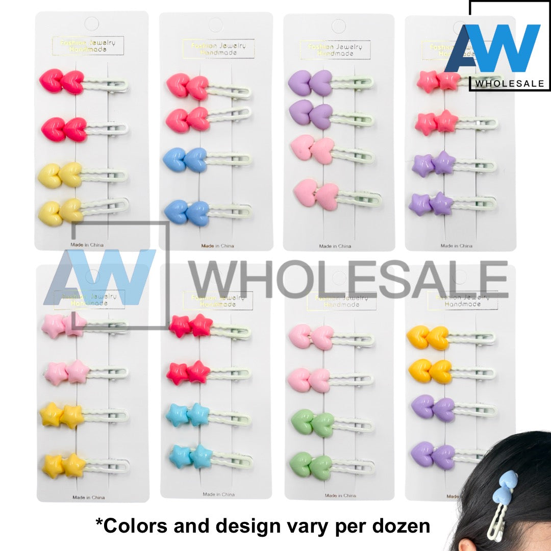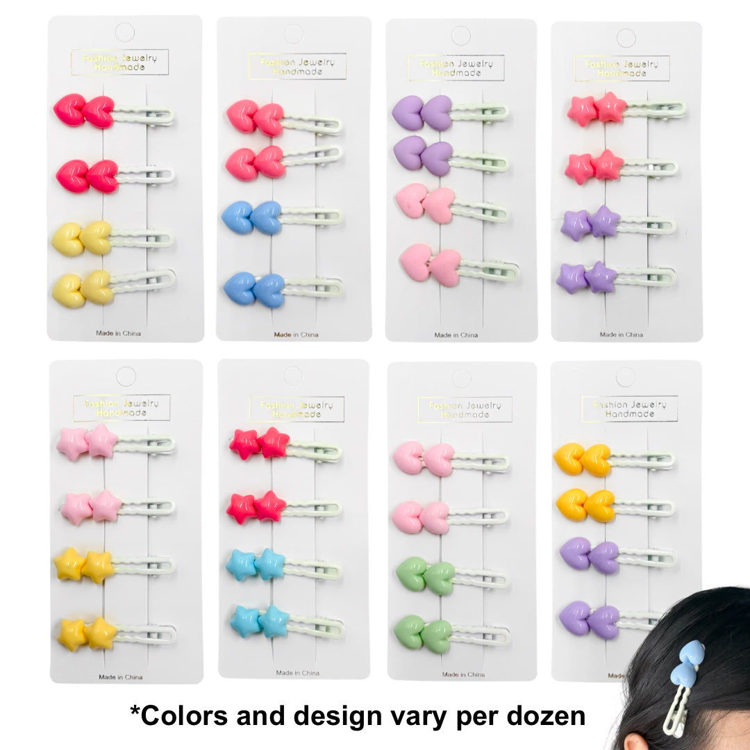 HPN-2424 (12 cards) Cute Star/Heart Hair Clips