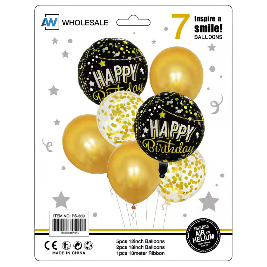 PS-369 (1 set) 7 in 1 Metallic Happy Birthday Set